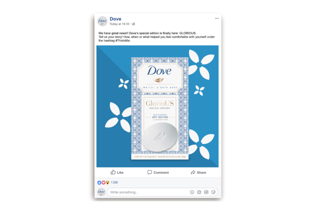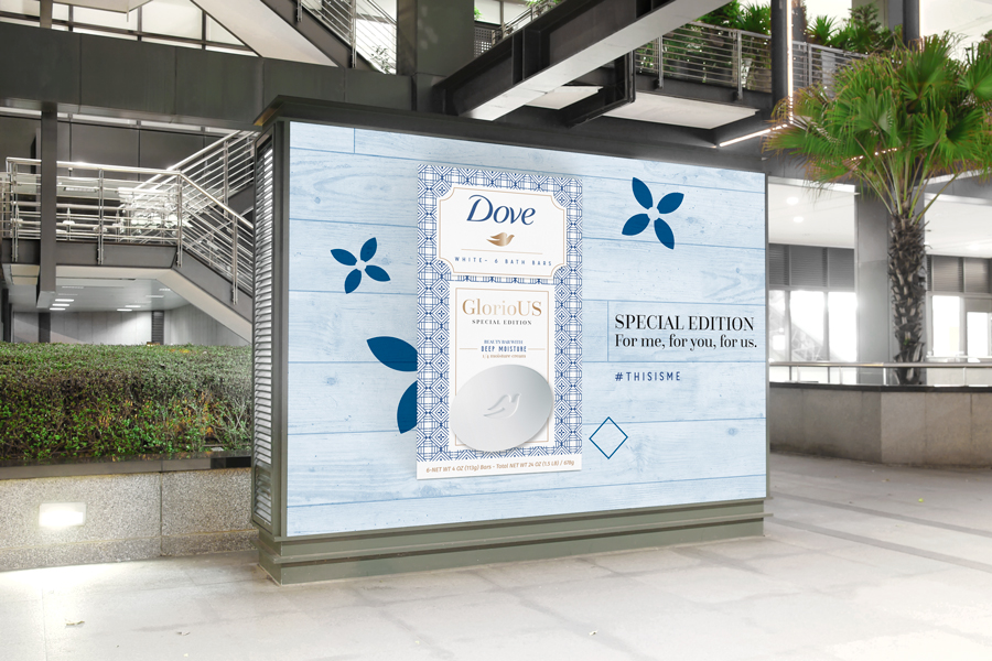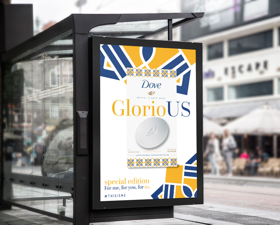 El diseño se realizó bajo el concepto que Dove es una marca de cuidado personal para todas las mujeres, absolutamente todas. GlorioUS celebra los cuerpos y personalidades de sus diferentes consumidoras. Sin importar tallas y complexiones; todas somos gloriosas.